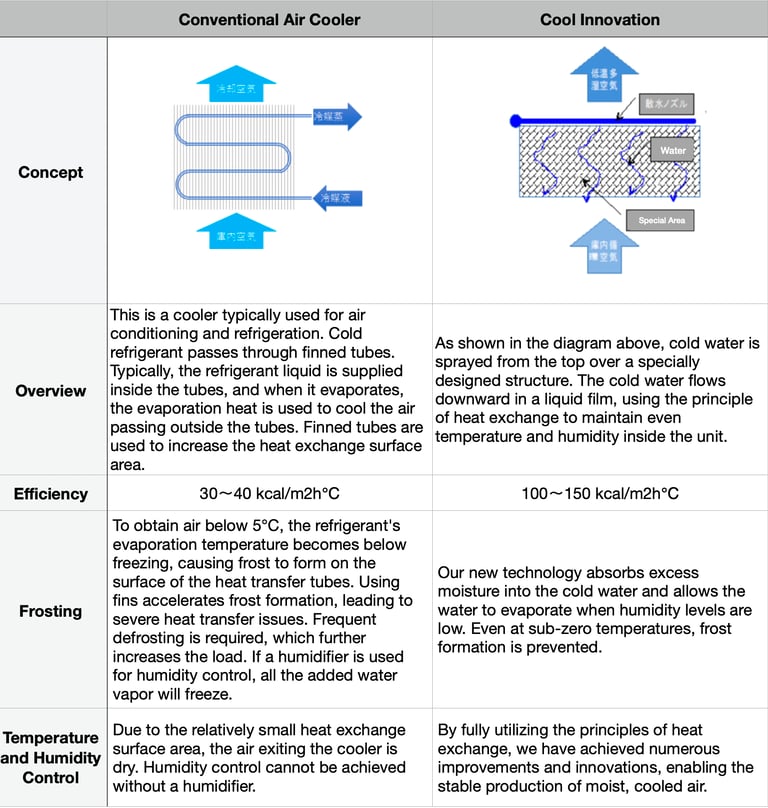 Cool Innovation's technology effectively controls humidity by absorbing excess moisture and evaporating it as needed. With special structured heat exchange surface area, our system ensures efficient heat exchange, circulating moist, cooled air evenly throughout the storage space.