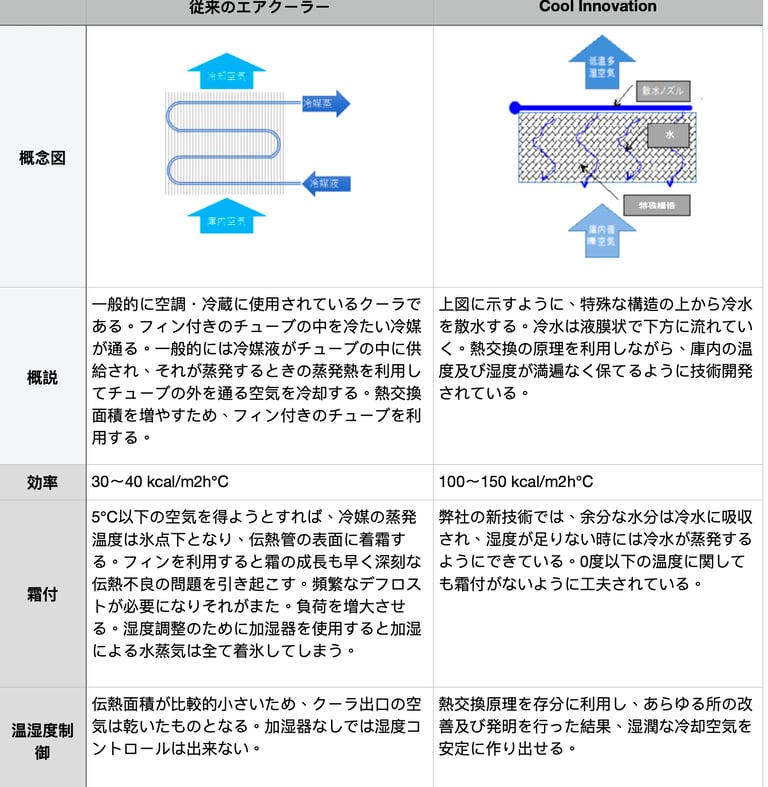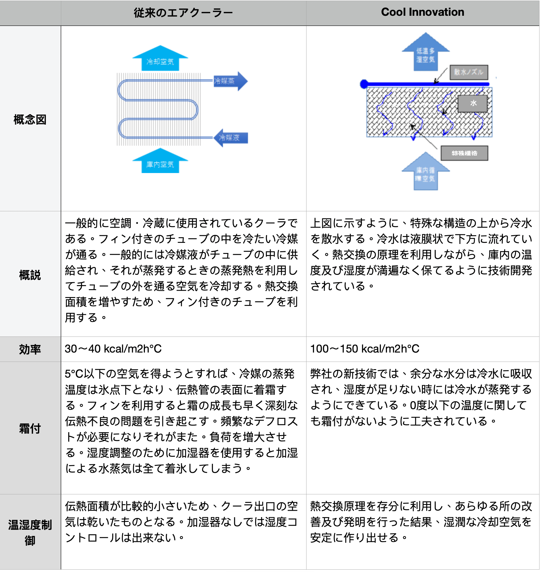 Cool Innovationの技術は、余分な水分を吸収し、必要に応じて蒸発させることで、湿度を効果的にコントロールできます。特殊構造及び素材により、効率的な熱交換にて、保存空間に満遍なく湿潤な冷却空気を循環させる事ができます。