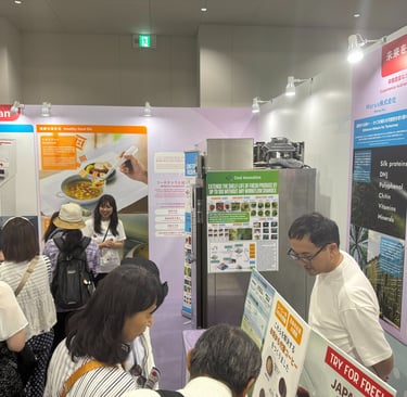 農林水産省の展示は、EXPOメッセ「WASSE」にて「伝統」「多様性」「未来」の3つのエリアで構成されました。当社はその中でも、日本の食と暮らしを支える産業の強みと課題、そして未来への取組を紹介する「未来へつなぐ」エリアに登場しました。