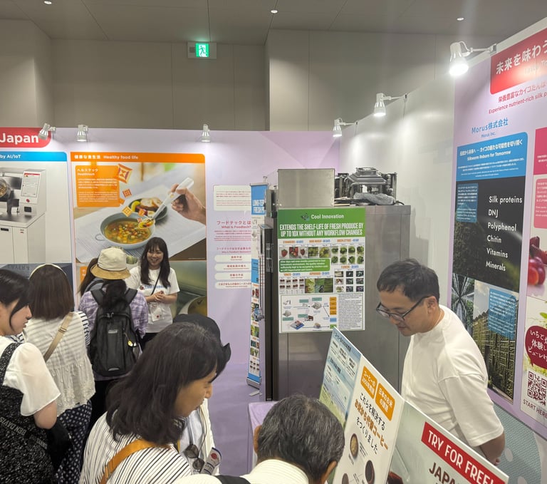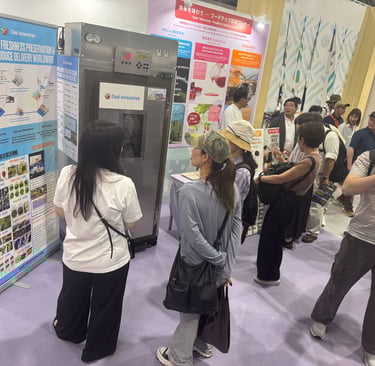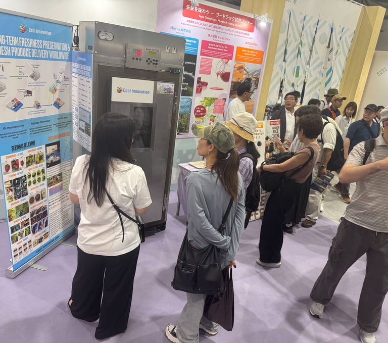 日本の高品質な食材を世界へ 和牛(チルド104日間保存)やイチジク(30日間保存)といった驚異的な鮮度維持データに基づき、冷凍ではなく「生のまま」最高品質で日本の農畜産物を世界中に届ける、新しい輸出モデルをアピールしました。